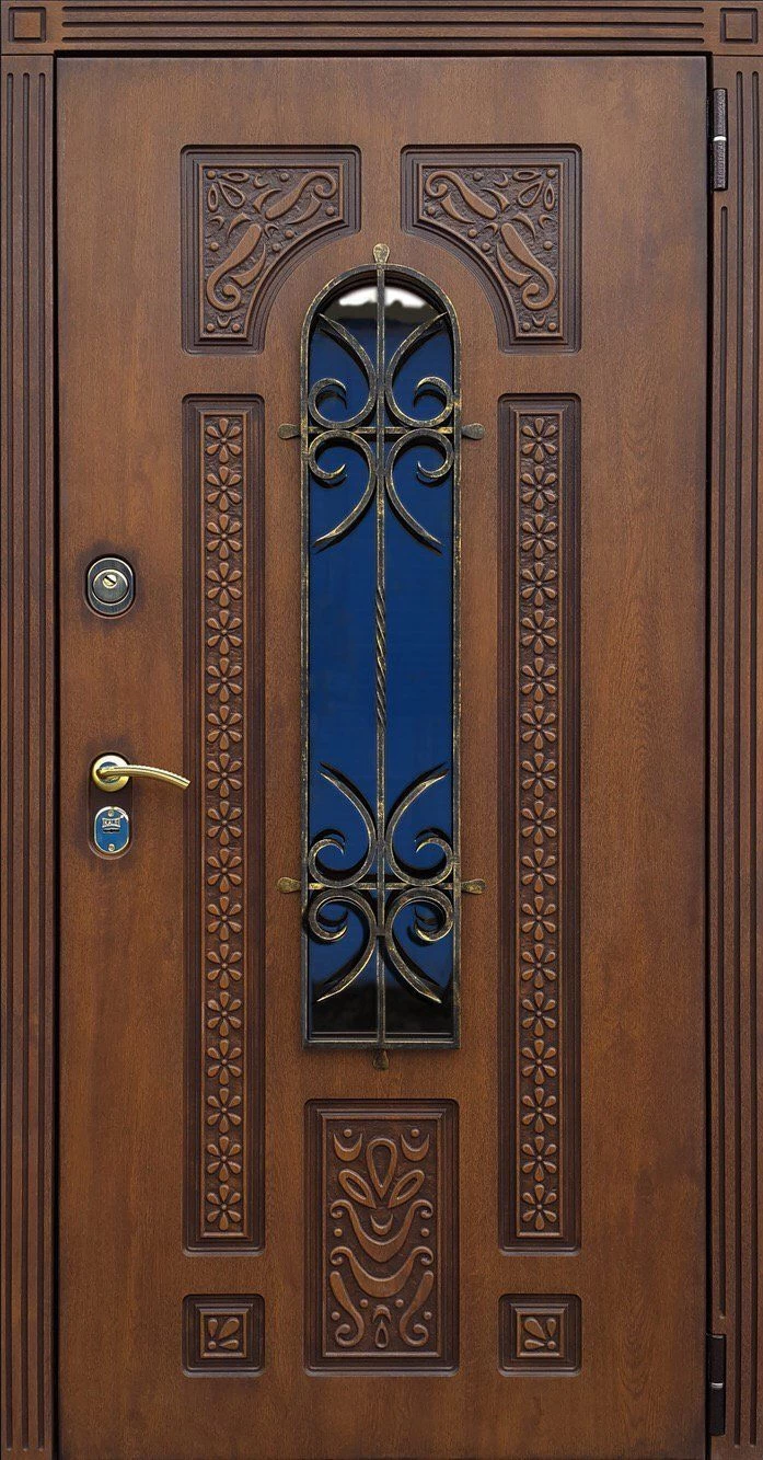 Входные двери в Назране с применением декора витражом изготавливаются из стального профиля, придающего прочность конструкции, а сама витражная вставка обладает высокой взломостойкостью, поскольку для витражных композиций используется специальное стекло, обработанное особым образом. Усилить надежность витражного элемента можно с помощью использования декоративных кованных решеток.