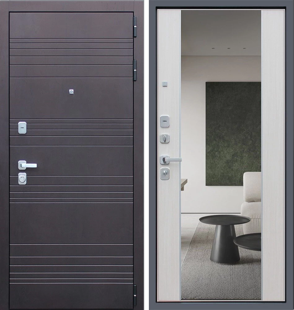 Надежная входная Дверь Дуэт с зеркалом премиум класса по цене 47 177 руб. Большая толщина стали защитит от проникновения в ваш дом, квартиру или коттедж. Используется очень качественная фурнитура: замки, цилиндры, ручки, защелки. Покрытие и отделка двери изготовлено под внимательным контролем производителя. Дверь имеет долгий срок службы и гарантию.