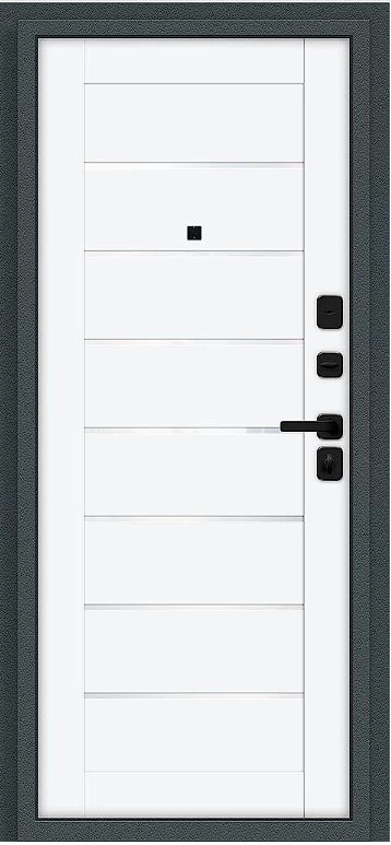 Надежная входная Дверь Браво Техно/SBlack Старк антрацит/White Silk премиум класса по цене 35 427 руб. Большая толщина стали защитит от проникновения в ваш дом, квартиру или коттедж. Используется очень качественная фурнитура: замки, цилиндры, ручки, защелки. Покрытие и отделка двери изготовлено под внимательным контролем производителя. Дверь имеет долгий срок службы и гарантию.