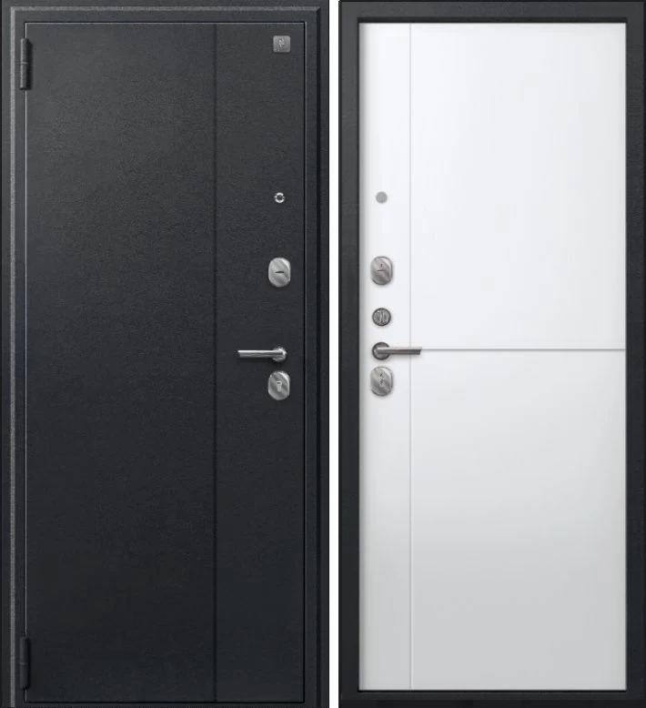 Надежная входная Дверь A-05 черный сатин - кашемир белый премиум класса по цене 30 427 руб. Большая толщина стали защитит от проникновения в ваш дом, квартиру или коттедж. Используется очень качественная фурнитура: замки, цилиндры, ручки, защелки. Покрытие и отделка двери изготовлено под внимательным контролем производителя. Дверь имеет долгий срок службы и гарантию.
